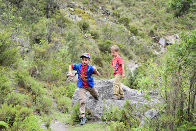 The views were breathtaking and the collection of floura and fauna on the hike was impressive. The boyz however were starting to show the fatigue of four days of early mornings and strange environments. The three miles of downhill walking ended at exactly the right time. Maybe even a few minutes too late :)... But, we made it.